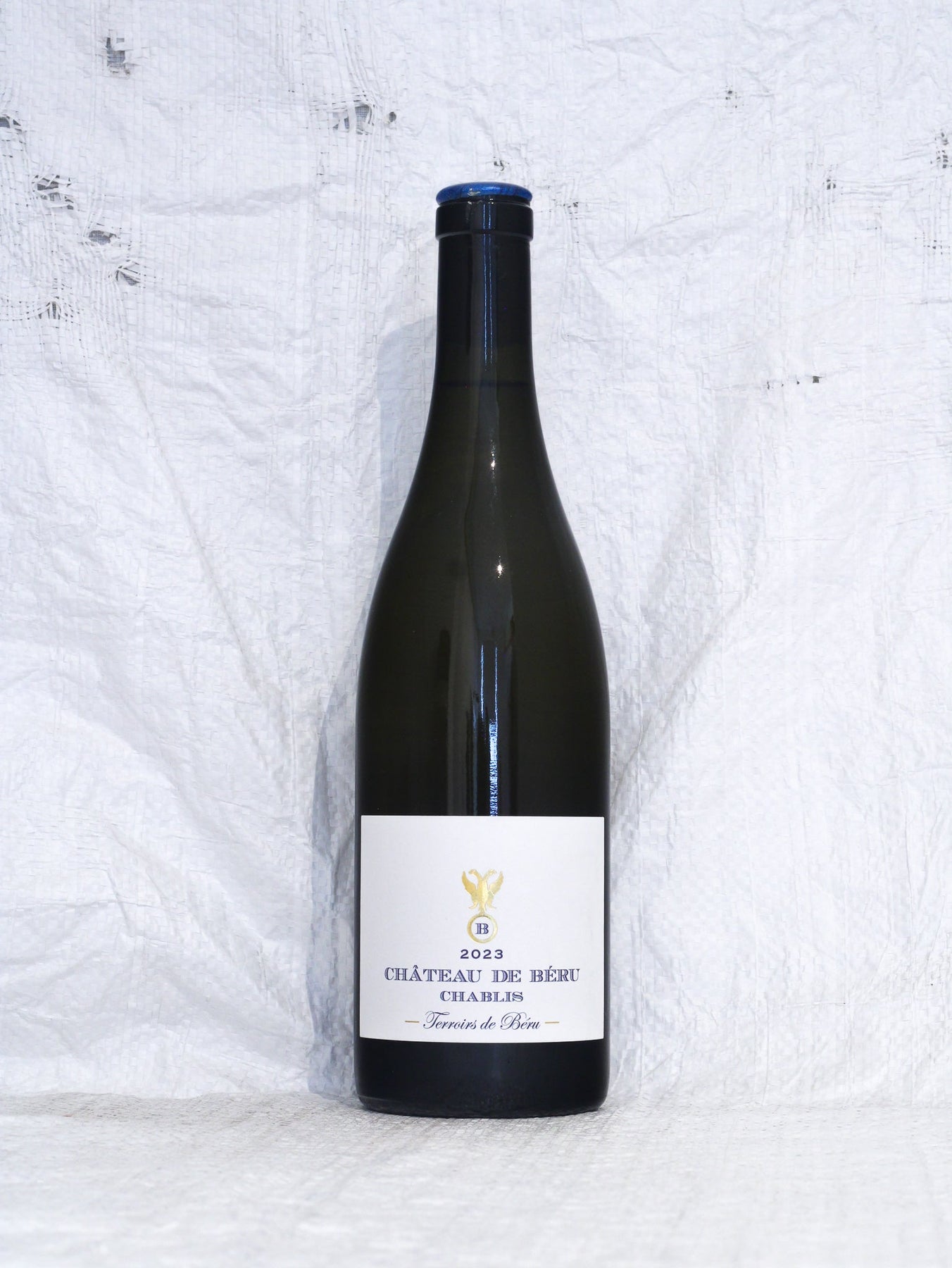Terroirs de Béru 2023 Chablis von Château de Béru, Frontansicht der Chardonnay-Bioweinflasche bei Weinskandal